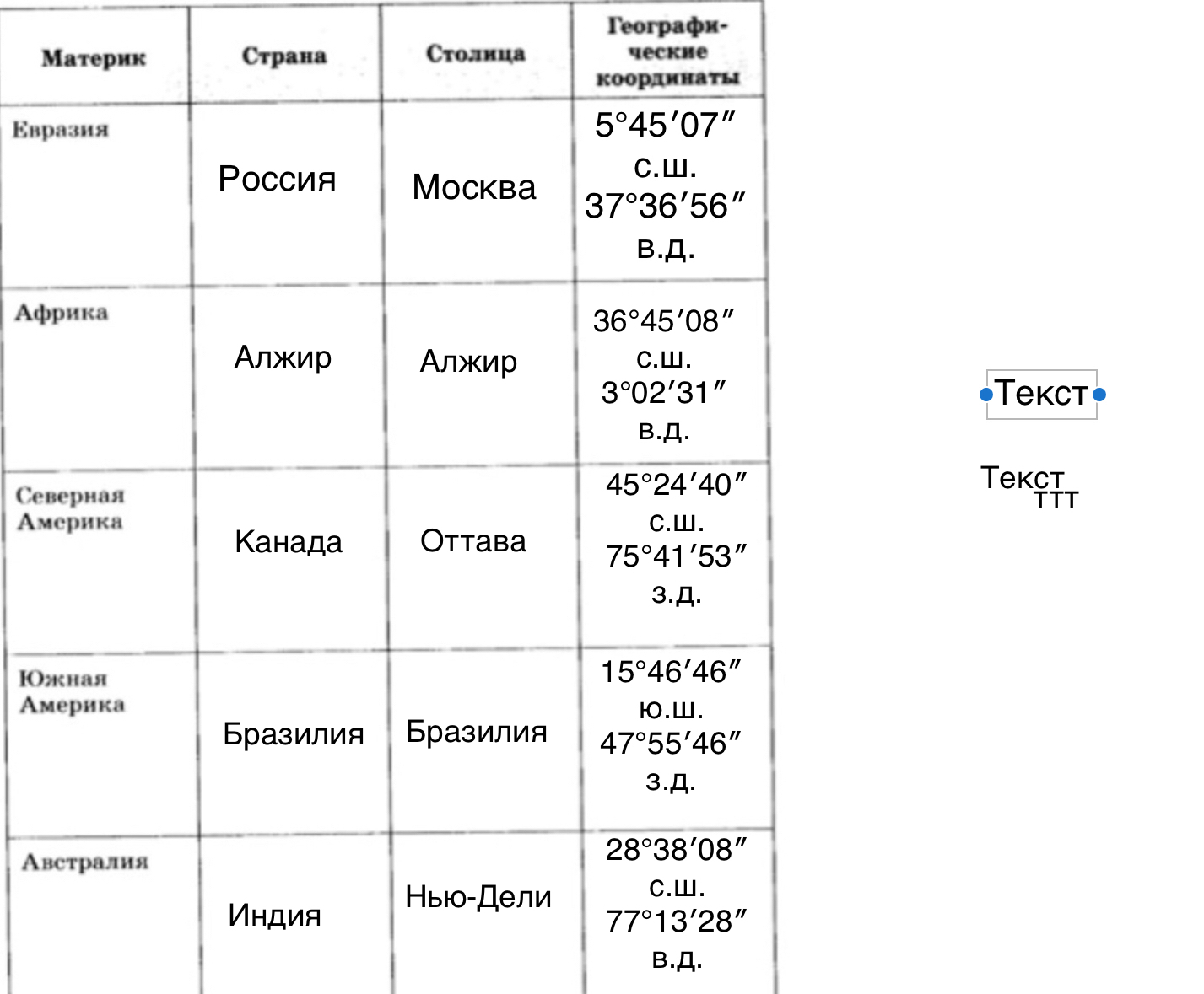 На странице вопроса Помогите пожалуйста с географией? из категории География вы найдете ответ для уровня учащихся 1 - 4 классов. Если полученный ответ не устраивает и нужно расшить круг поиска, используйте удобную поисковую систему сайта. Можно также ознакомиться с похожими вопросами и ответами других пользователей в этой же категории или создать новый вопрос. Возможно, вам будет полезной информация, оставленная пользователями в комментариях, где можно обсудить тему с помощью обратной связи.