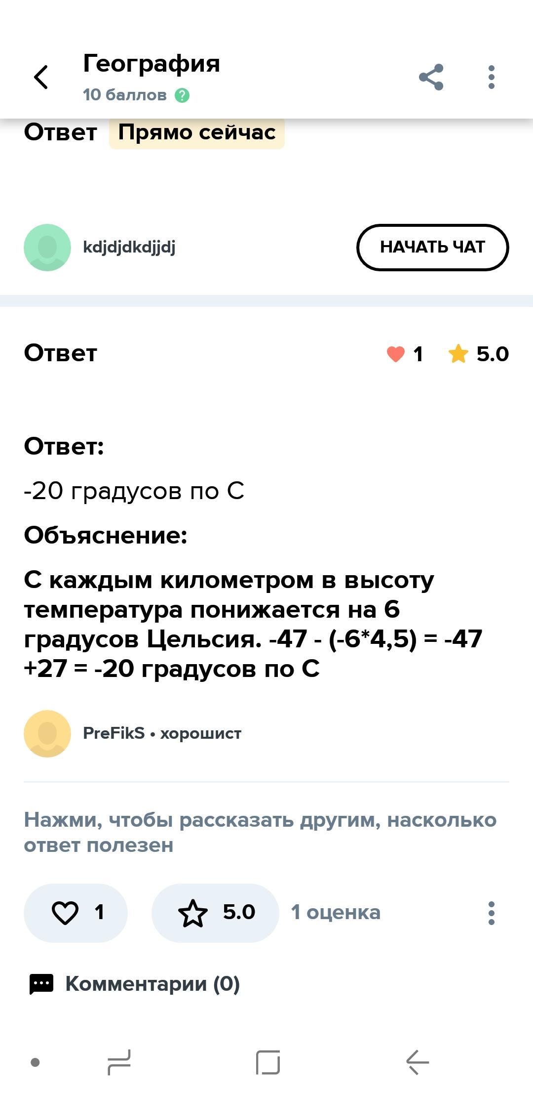 На этой странице находится вопрос Если на высоте 4, 5 км температура воздуха ( - 47 градусов по С) чему равна температура воздуха у поверхности Земли?, относящийся к категории География. По уровню сложности данный вопрос соответствует знаниям учащихся 1 - 4 классов. Здесь вы найдете правильный ответ, сможете обсудить и сверить свой вариант ответа с мнениями пользователями сайта. С помощью автоматического поиска на этой же странице можно найти похожие вопросы и ответы на них в категории География. Если ответы вызывают сомнение, сформулируйте вопрос иначе. Для этого нажмите кнопку вверху.