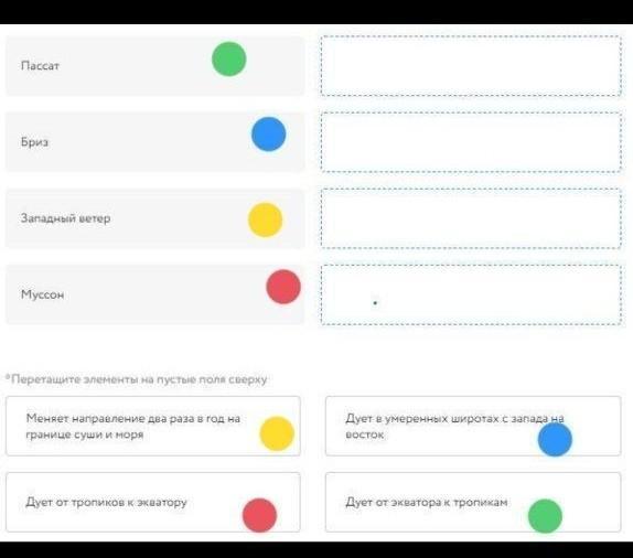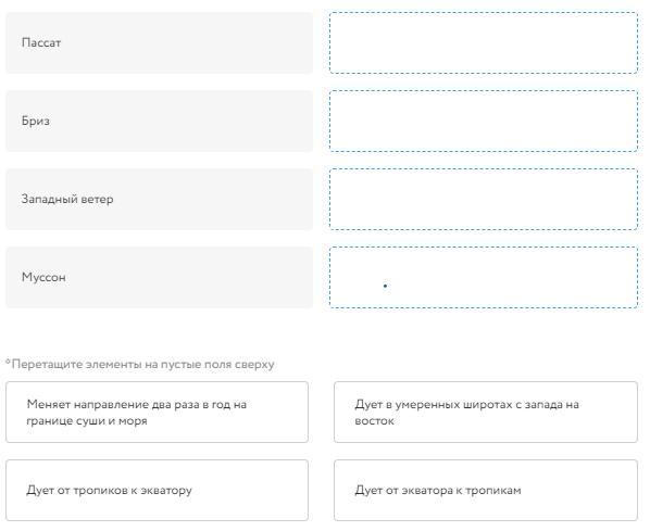 Установите соответствие между названием ветра и его направлением.