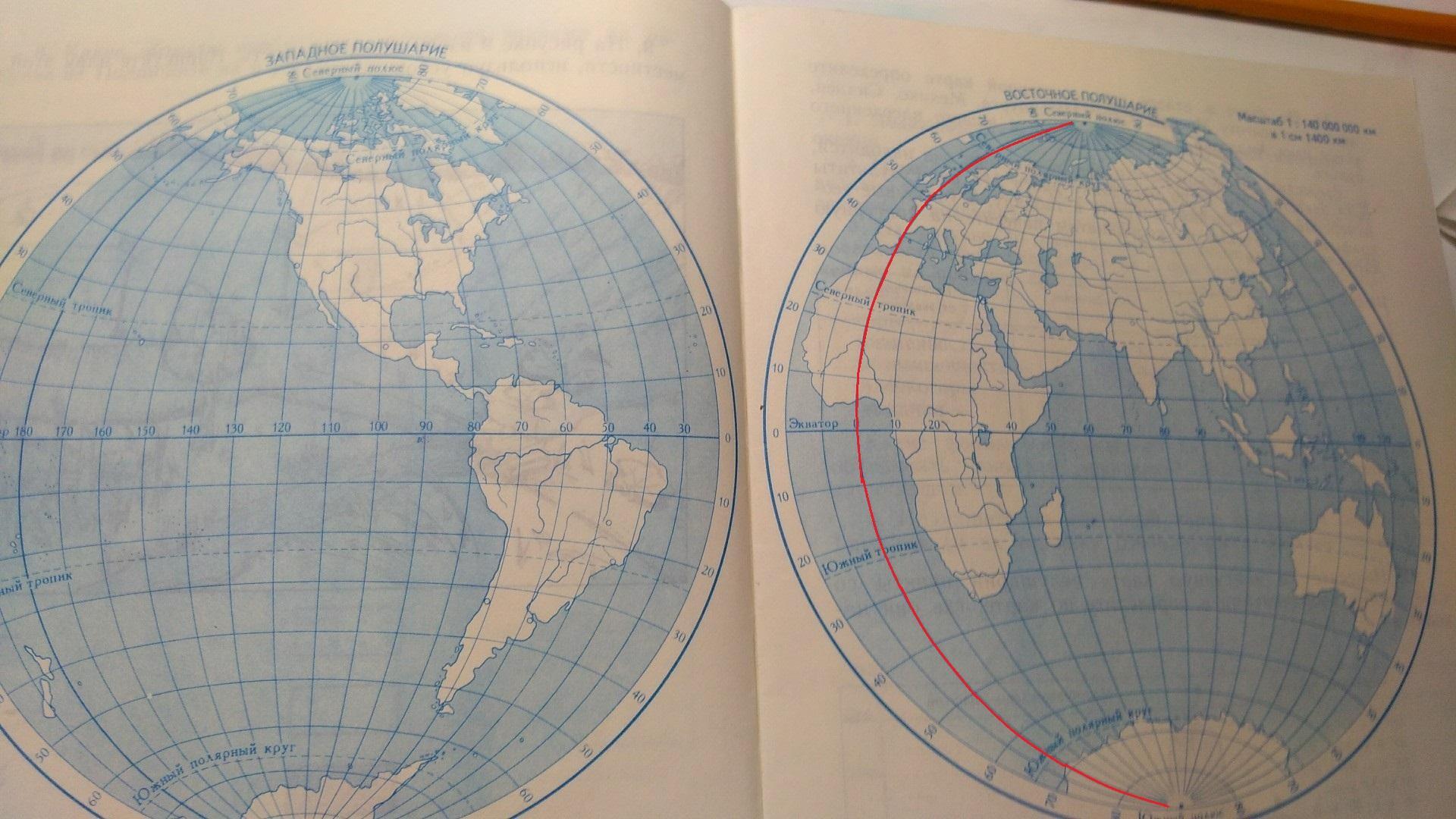 Обозначьте Гринвичский меридиан красным цветом.